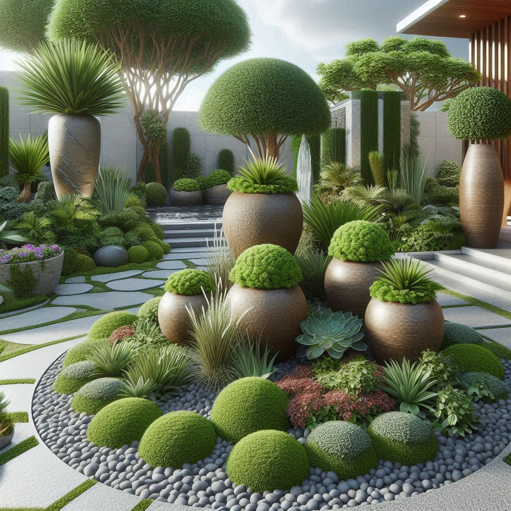 Peyzaj tasarımında dekoratif saksılar, estetik görünümü güçlendiren, bitkilerin